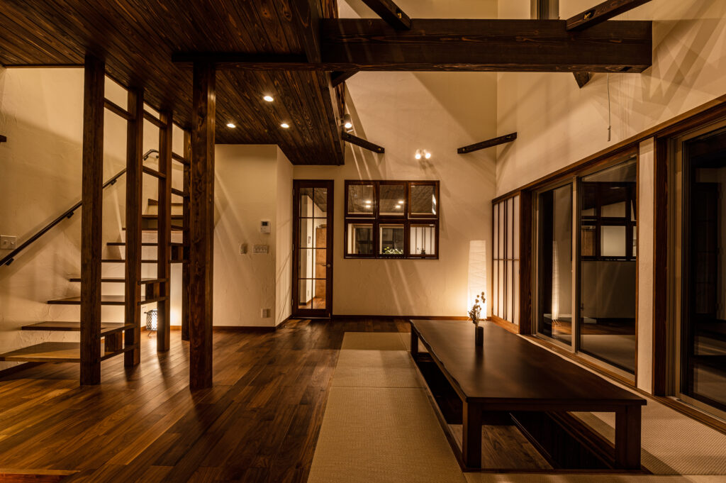 和モダンで大人な雰囲気を演出しました。リビングから見える景色が